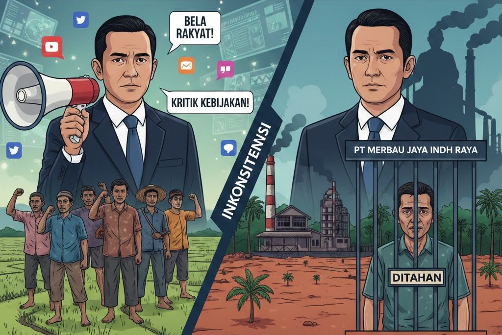 Ia menegaskan, warga yang kini tersandung perkara pidana sejatinya sedang memperjuangkan hak atas lahan sawah yang disebut telah digusur dan dialihfungsikan menjadi kebun sawit.